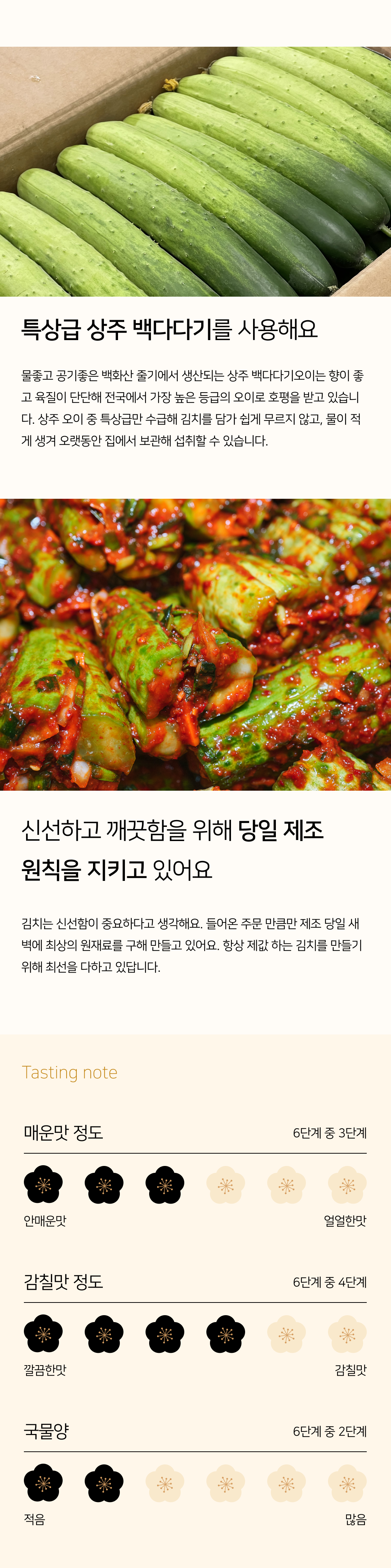신선하고 아삭한 오이에 알싸한 소와 정성을 가득 넣어서 만든 김치