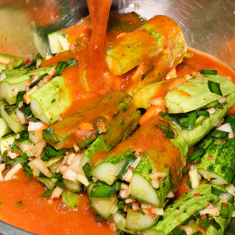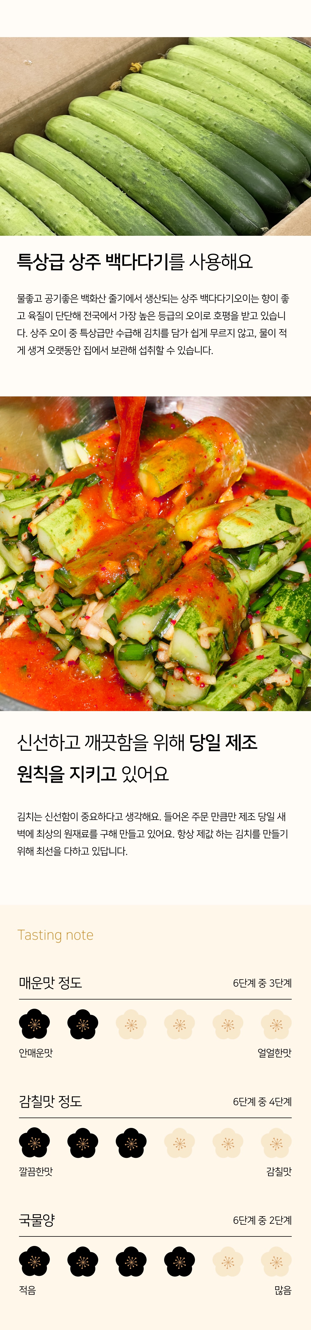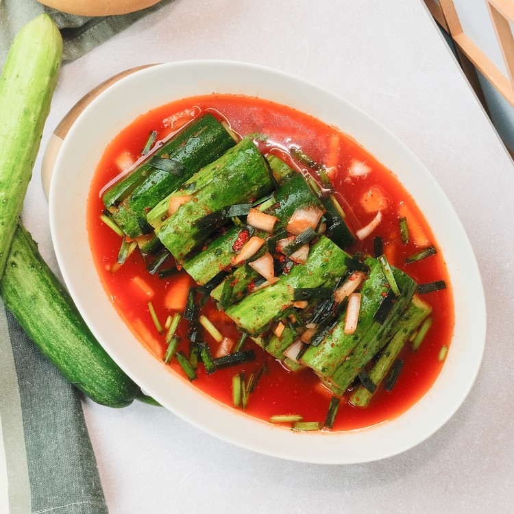 특상급 오이에 소와 정성을 가득 넣어 자박하게 만든 김치