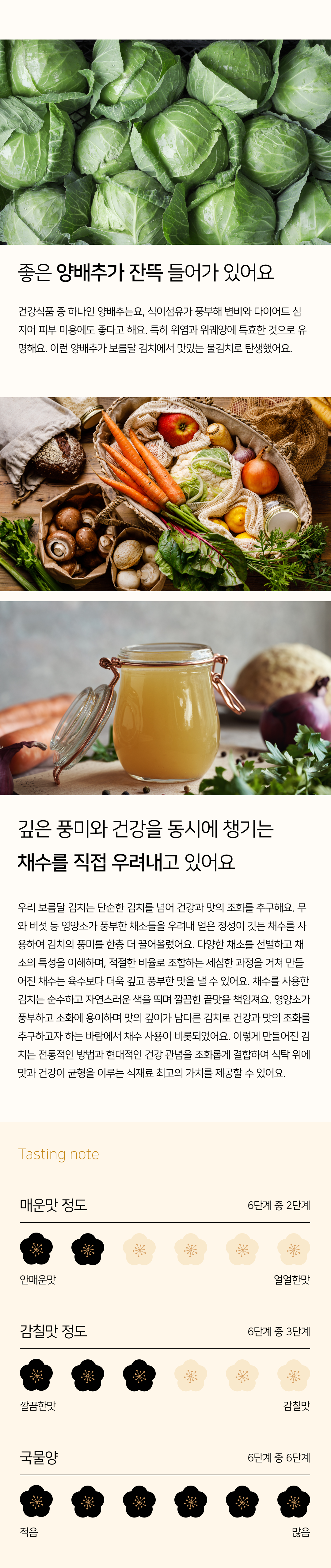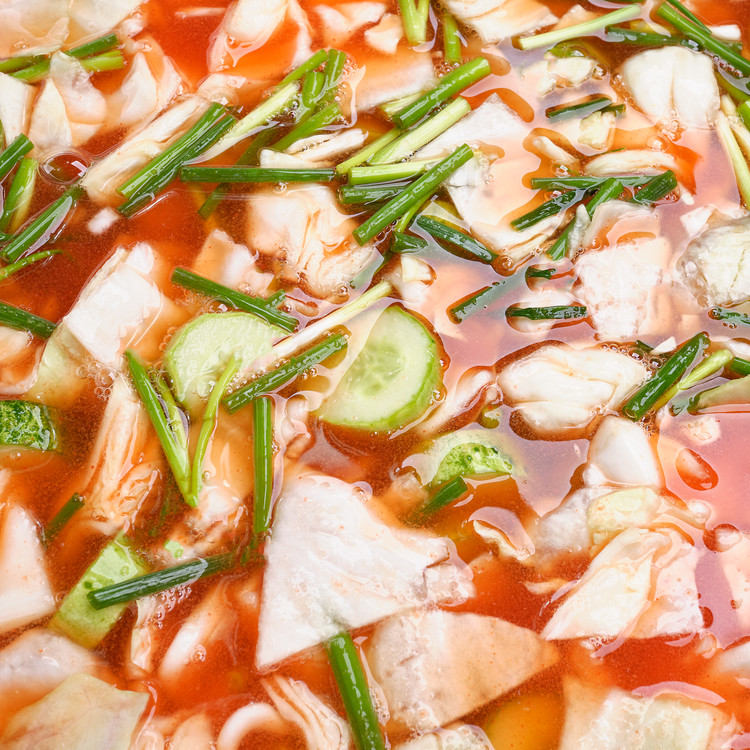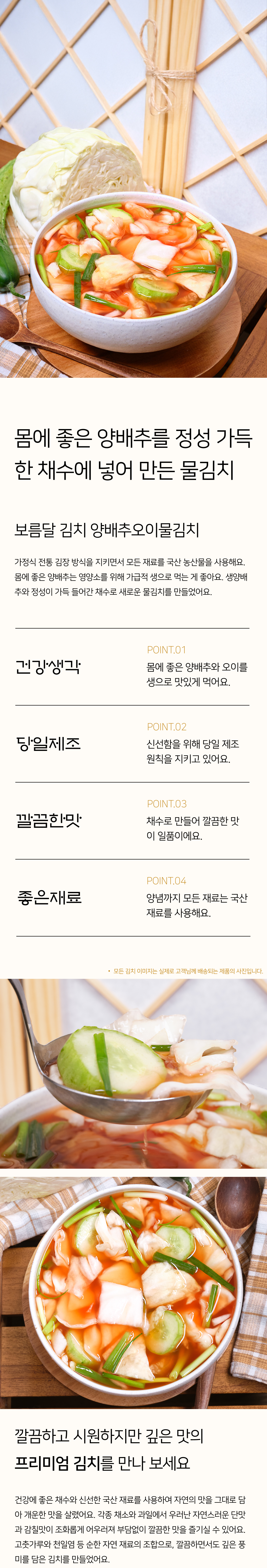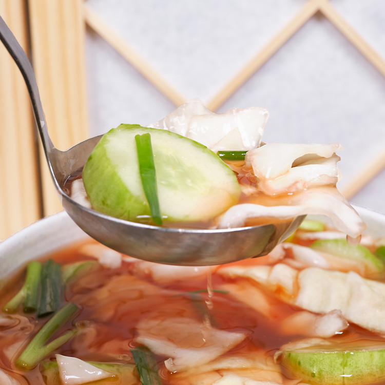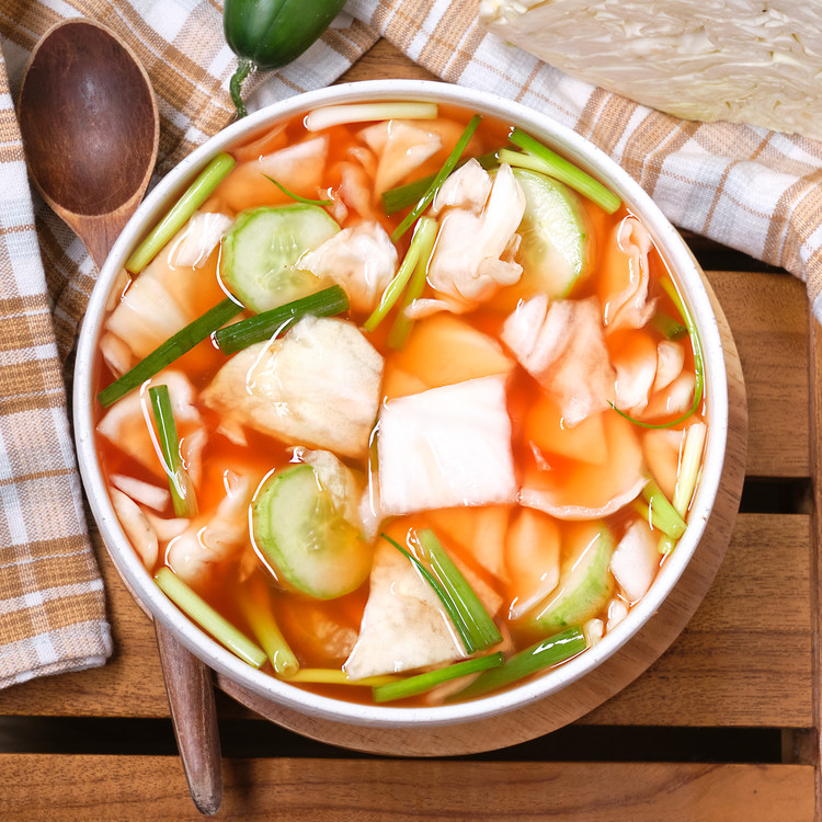 신선한 양배추와 오이의 완벽한 조합을 보이는 매력적인 물김치